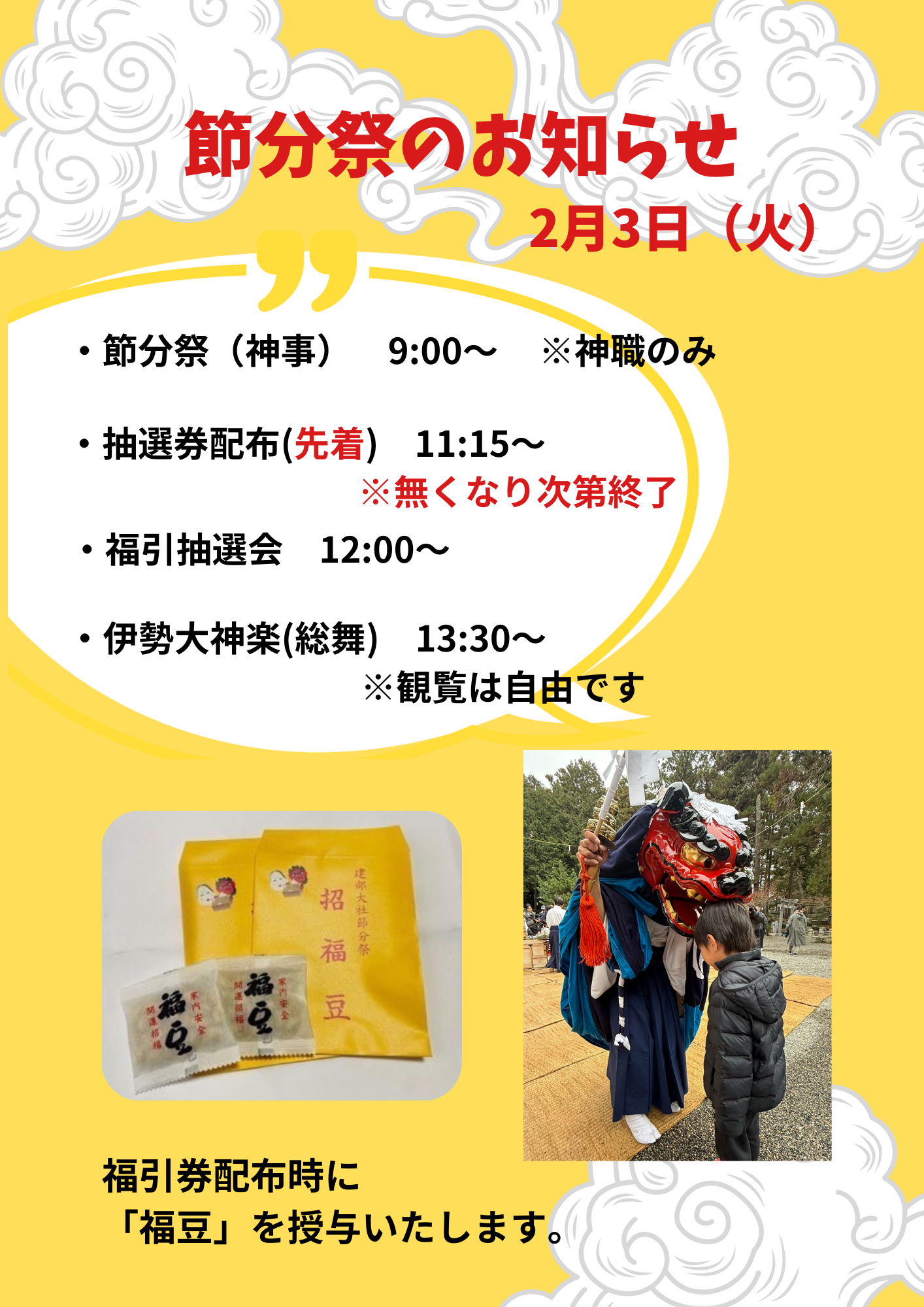 2月3日(火)午前9時より、節分祭を斎行いたします。