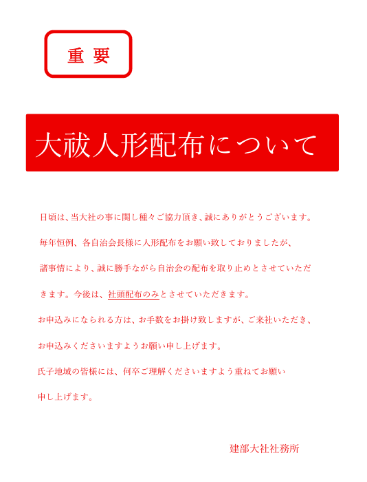 令和8年大祓人形配布について