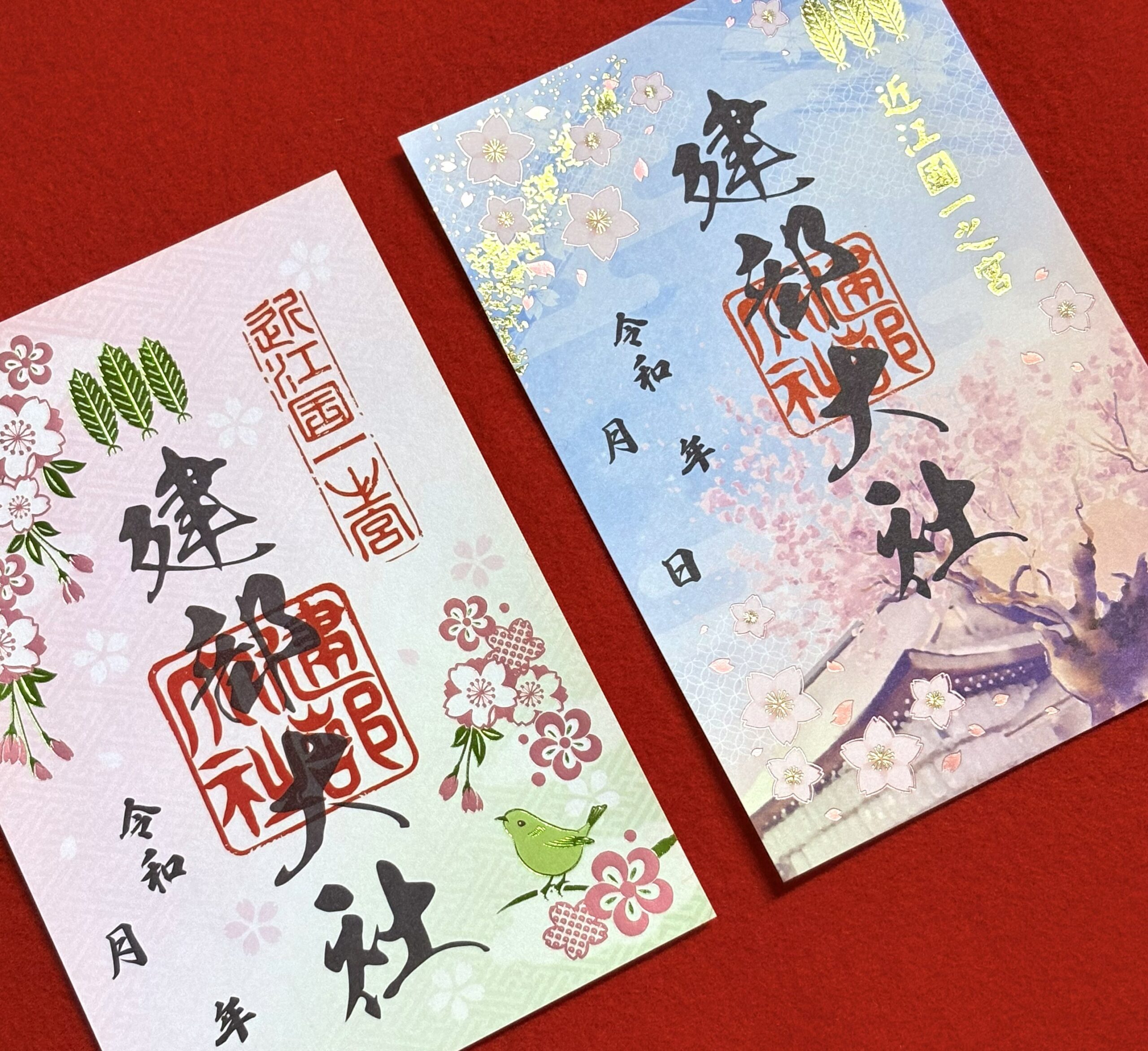 今回のご朱印は、千年を越え咲き続けるその姿を、やわらかな春空のもと、桜と社殿が織りなす一瞬を切り取り、御神徳への感謝とご加護を込めて奉製したものです。
