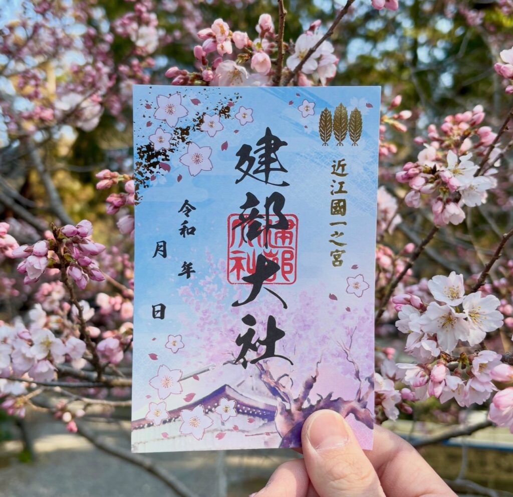 今回のご朱印は、千年を越え咲き続けるその姿を、やわらかな春空のもと、桜と社殿が織りなす一瞬を切り取り、御神徳への感謝とご加護を込めて奉製したものです。